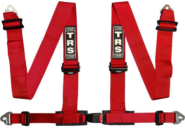 Der Clubman 75mm 4 Punkt Gurt von TRS mit ECE Zulassung in den Farben Rot, Gelb und Schwarz. Bauartgenehmigt und zugelassen nach europäischem Standard ECE 16.08.