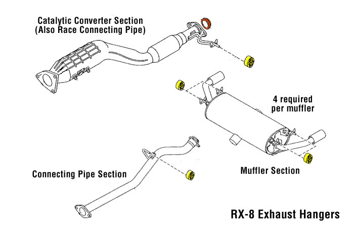 - Katalysatorabschnitt (auch Racing Beat Race-Verbindungsrohr) – Es wird ein (1) Aufhänger benötigt.