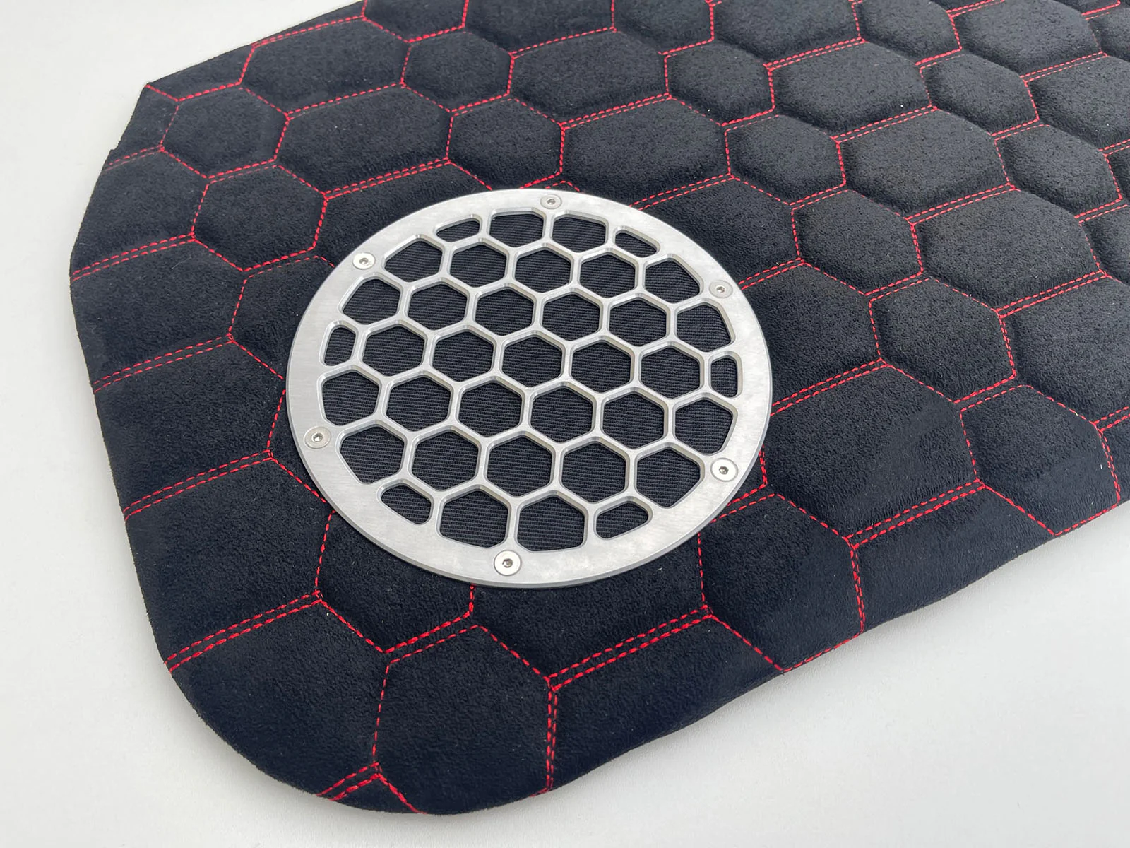 - CNC-machined aluminum speaker grilles with premium audio acoustic fabric