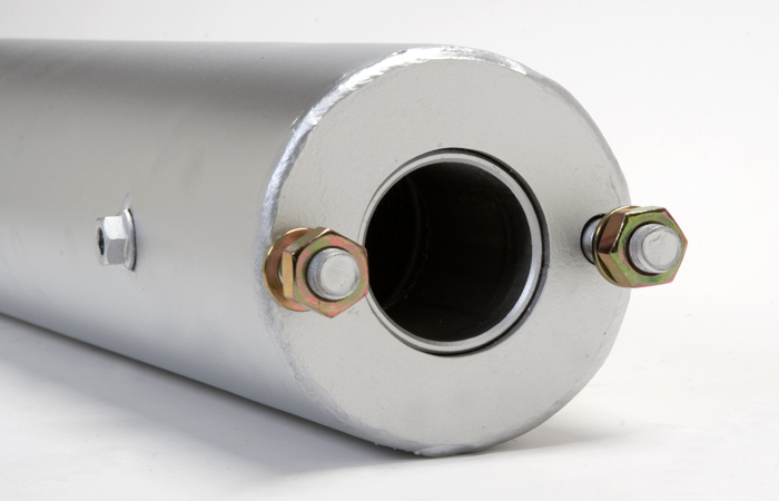 The stainless steel Power Pulse Presilencer improves the character of the exhaust noise, dramatically reducing the inherent, obnoxious metallic high frequency noise with virtually no power loss. Constructed with a high temperature, 2-inch I.D. perforated core of 304 stainless steel wrapped with high-temperature stainless steel wool, the Power Pulse Presilencer measures 20 inches in length with a 4-inch outside diameter. The mounting studs are 12mm both front and rear.
