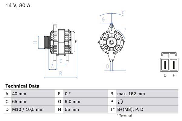 Bosch alternator fitting MX-5 NB/NBFL 1.6 and 1.8 liter engines.