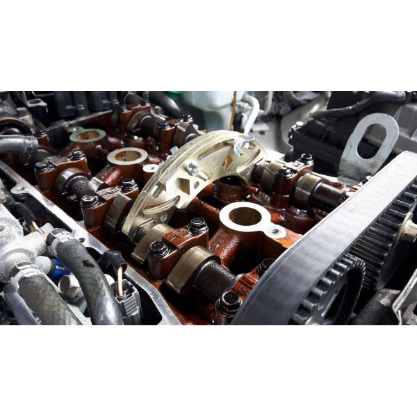 Handy and important tool, when the next timing belt changes are due. The tool locks the two camshafts steady in position and allows stressless work on the gears or belts.