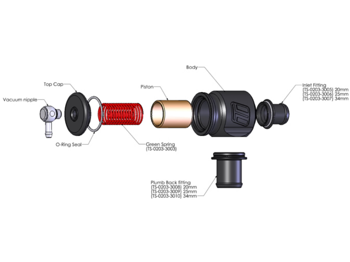Das Gehäuse wird aus hochfestem Aluminium gefertigt und ist aus dem Vollen gefräst. Das Ergebnis sind besonders kleine und leichte Ventile, die extremen Bedingungen standhalten. Im Gegensatz zu anderen Ventilen mit Kunststoffmembran sind diese Ventile mit einem präzise gefertigten Kolben ausgestattet, der saugend in das Gehäuseinnenteil passt. Damit wird das Risiko ausgeschlossen, dass diese Ventile schon nach kurzer Zeit anfangen zu lecken. Aufgrund bloß minimaler Produktionstoleranzen wird zum Abdichten des Kolbens kein O-Ring mehr benötigt, wodurch diese Blow Off Ventile extrem robust, wartungsarm und verlässlich sind. Wir selbst nutzen dieses Blowoff in all unseren Turbokits mit Upgrade-Ladeluftkühler.